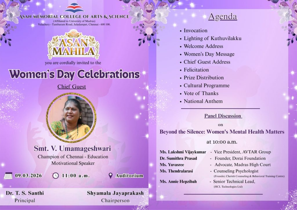 Dr. T. S. Santhi, Principal, Asan Memorial College of Arts and Science has more than 30 years of teaching experience.