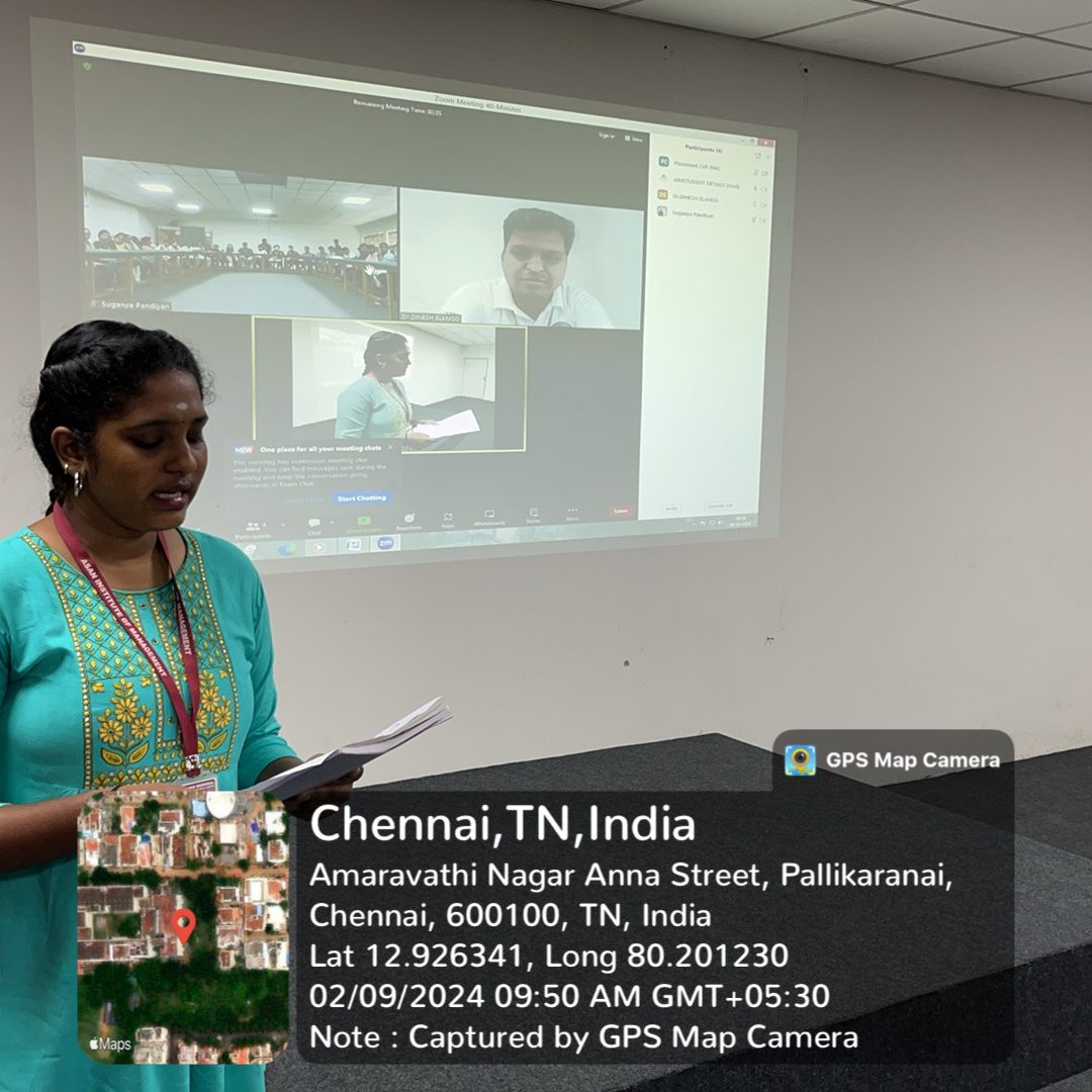 - As the department CSR, Dr.P.Suganya Devi conducted a program on ‘Knowledge Enrichment: Dream to Achieve’, for IX standard students of Government Higher Secondary School, Pallikarnai, Chennai.