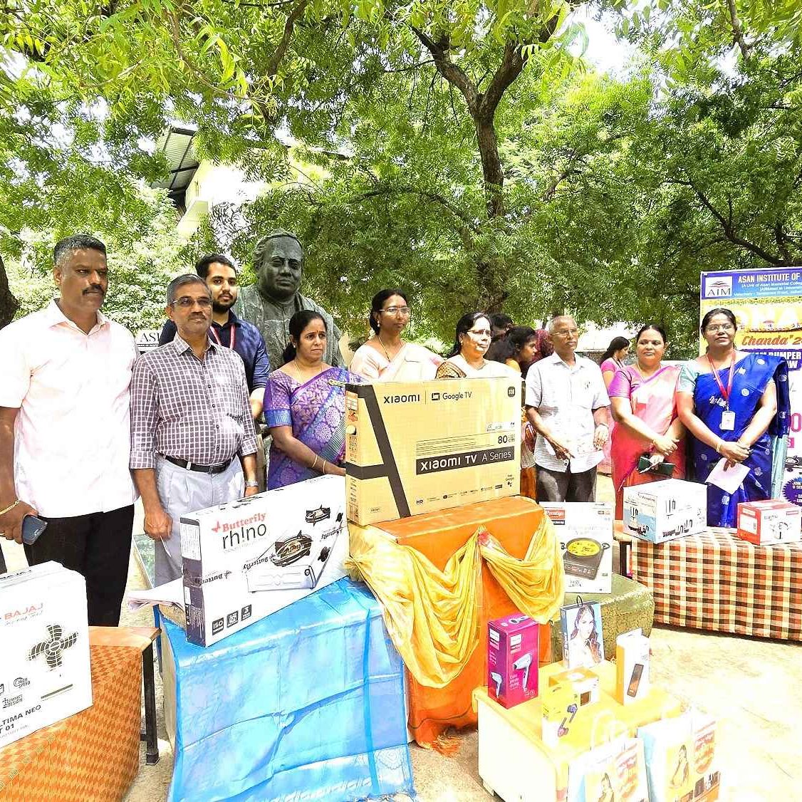 - ‘Onachanda’ a grand shopping festival was organised by the Asan Institute of Management along with Enactus Club of the college to tap the entrepreneurial skills of the students, conducted on 23rd August 2023. Around 50 stalls were raised and it was a remarkable accomplishment with their enthusiastic participation. Various vibrant cultural programmes including traditional Kerala art forms like Thiruvathira, Onapattu and Vanchipattu were performed by the students of the college and AKG Public school.