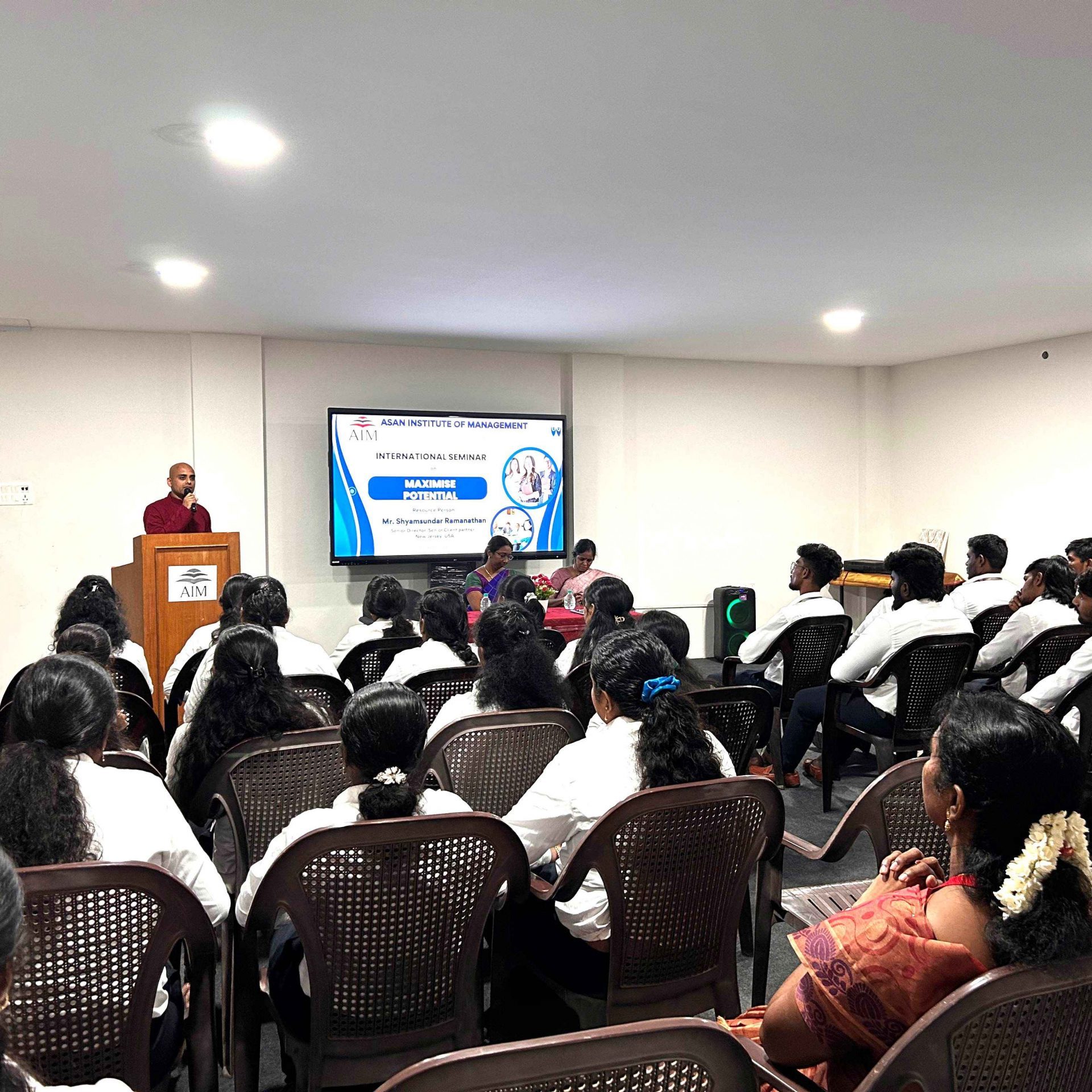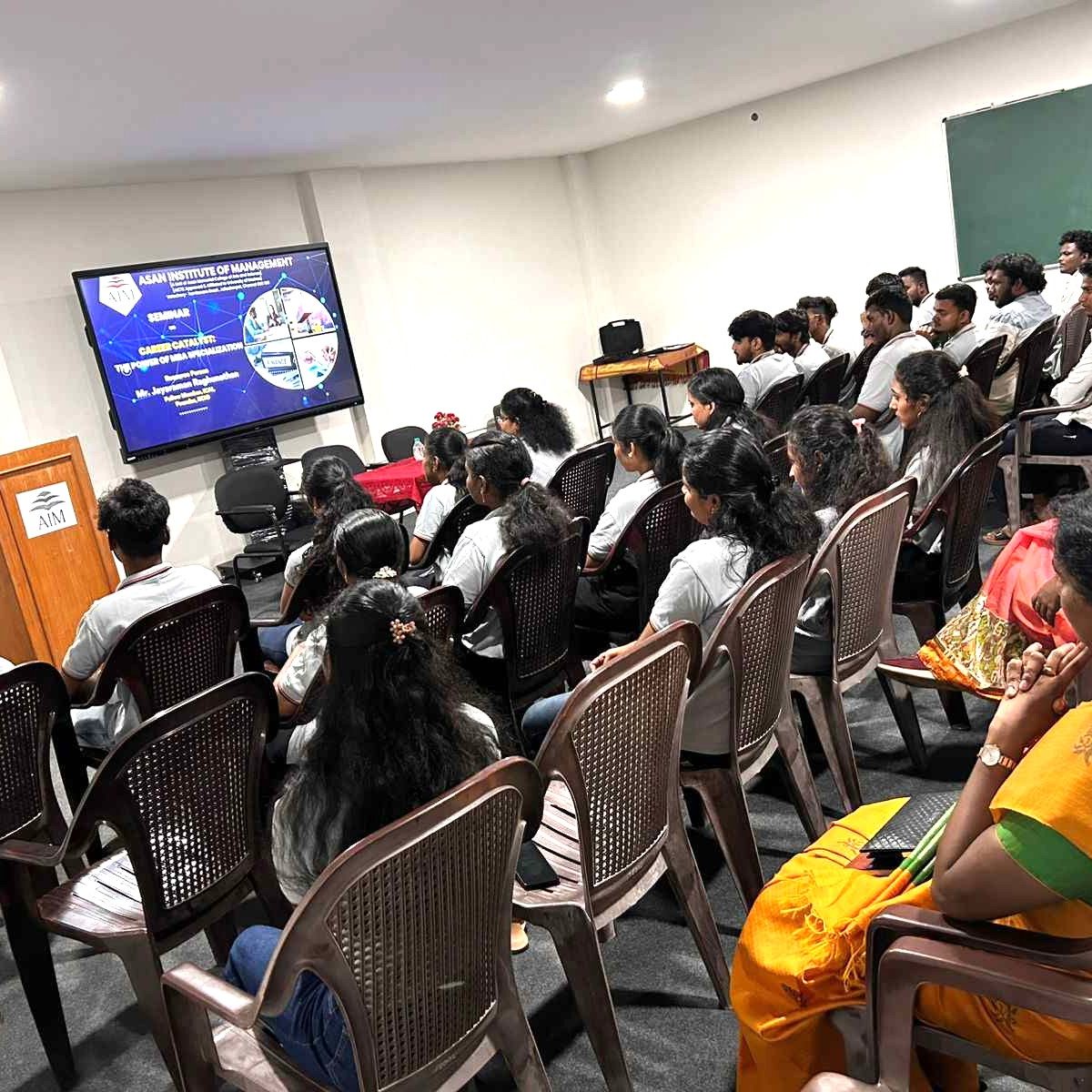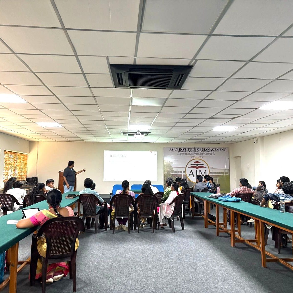 Asan Institute of Management, a unit of Asan Memorial College of Arts and Science has organised an International Lecture Series on BUSINESS AND SOCIAL MEDIA ANALYTICS on 9th February, 2024 at the college. Dr. Dinesh Elango , Associate Professor, School of Business, American University of Phnom Penh, Phnom Penh, Cambodia, addressed the students and the faculty fraternity. Around 100 students and Faculty members participated in the Workshop. The event was coordinated by Dr.P. Parameshwari & Dr. P. Suganya Devi Faculty Coordinators.