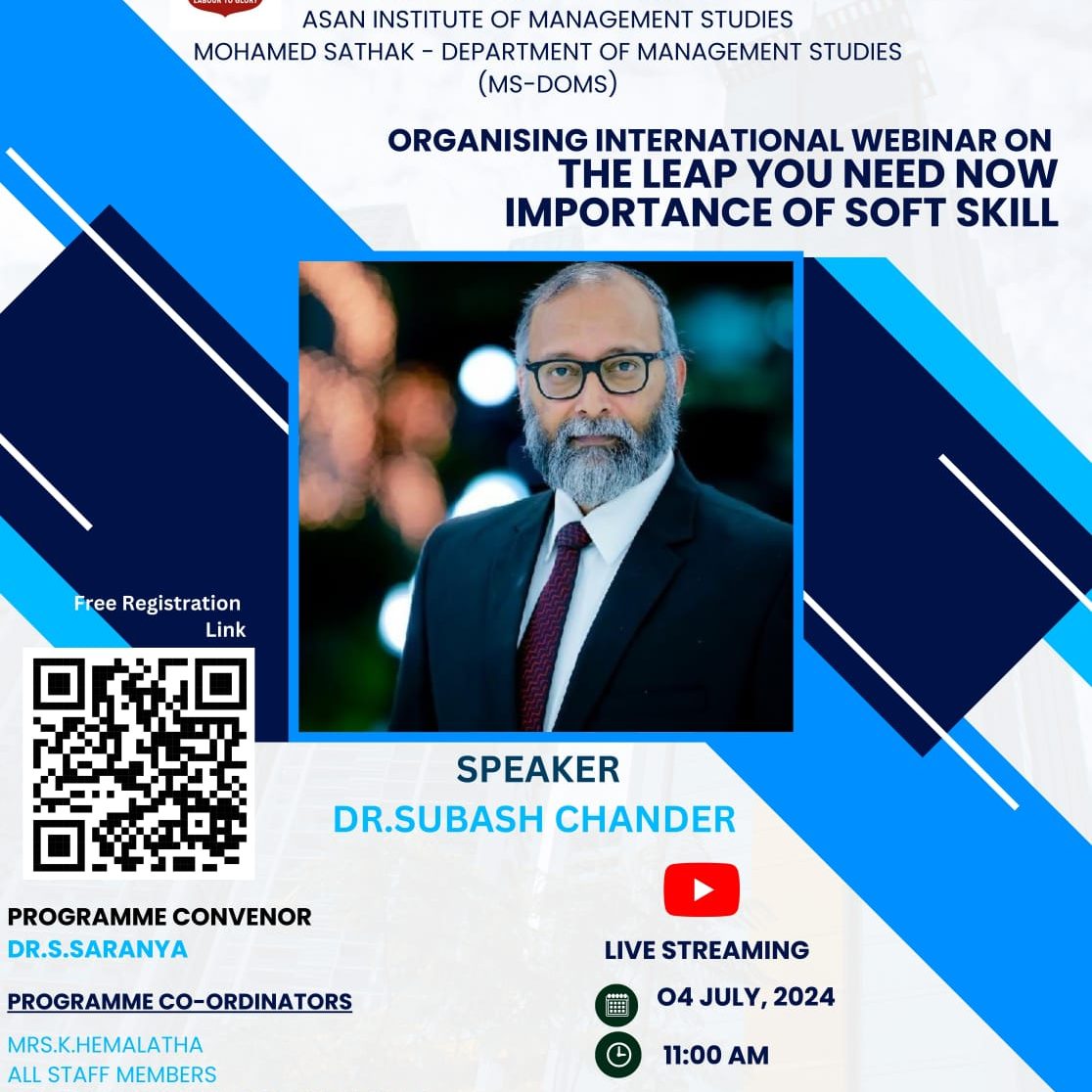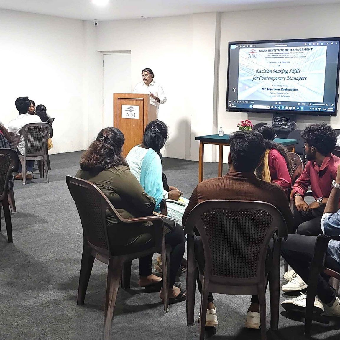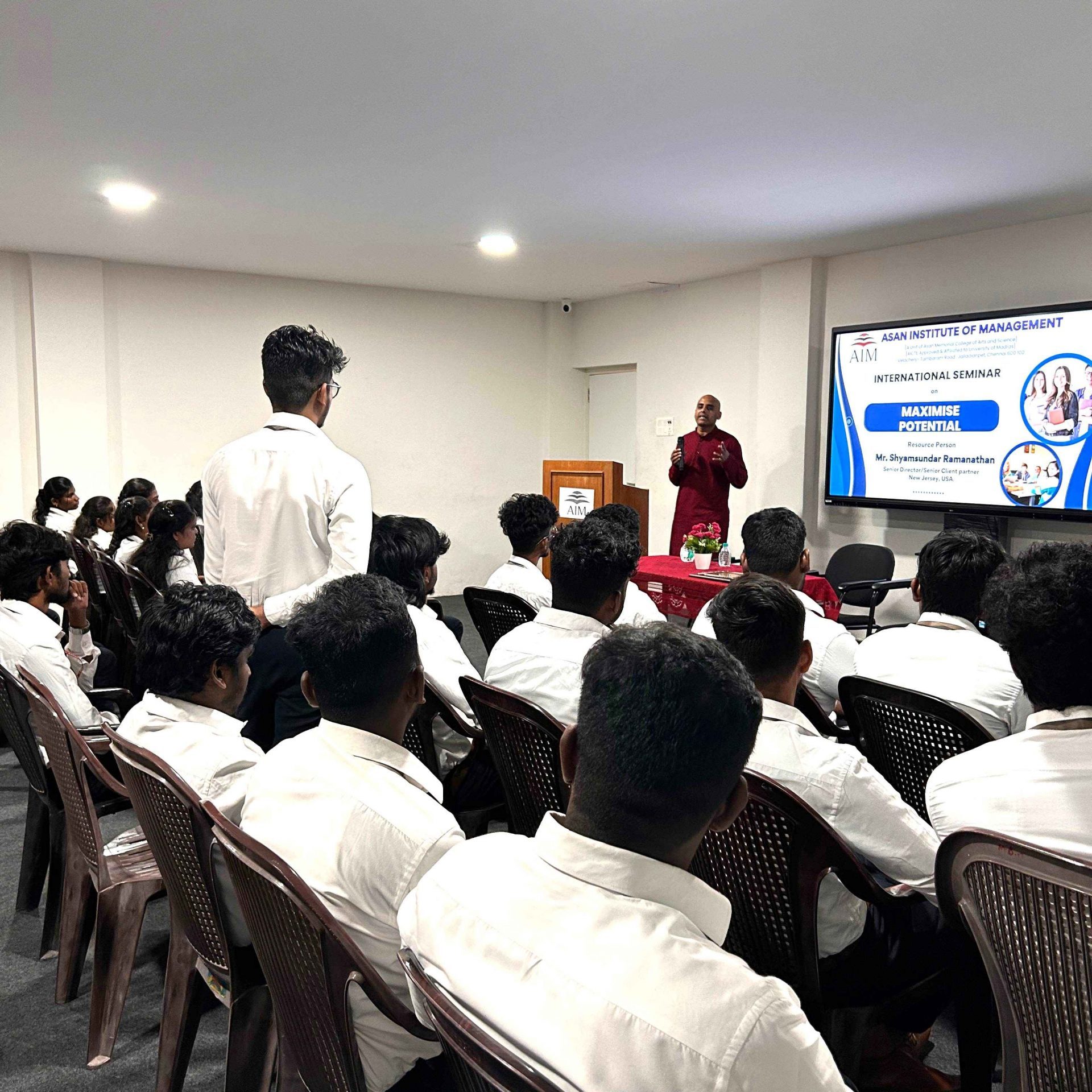 Asan Institute of Management, a unit of Asan Memorial College of Arts and Science has organised an International Lecture Series on BUSINESS AND SOCIAL MEDIA ANALYTICS on 9th February, 2024 at the college. Dr. Dinesh Elango , Associate Professor, School of Business, American University of Phnom Penh, Phnom Penh, Cambodia, addressed the students and the faculty fraternity. Around 100 students and Faculty members participated in the Workshop. The event was coordinated by Dr.P. Parameshwari & Dr. P. Suganya Devi Faculty Coordinators.