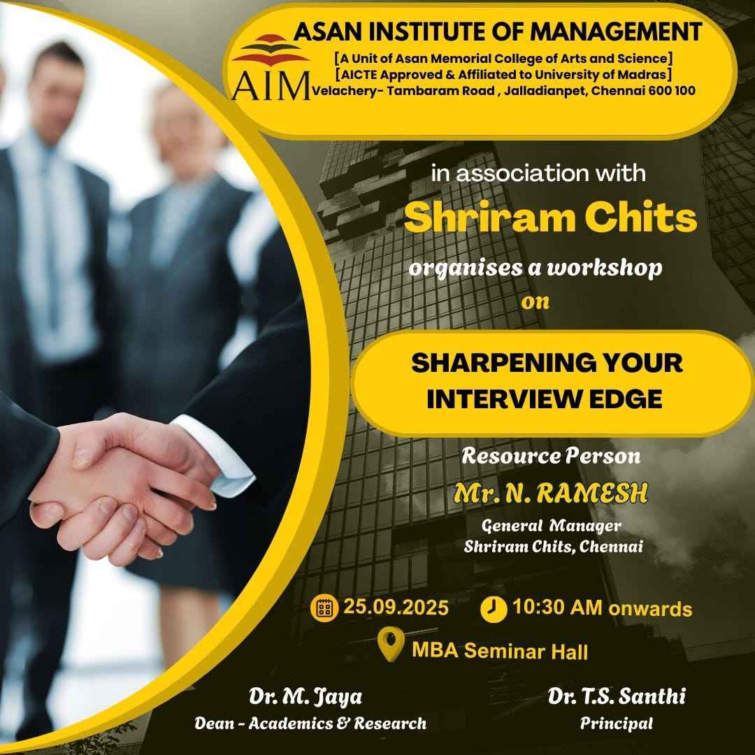 - A One day FINANCE WORKSHOP was conducted for MBA students on 2nd September 2022 by AK.NARAYAN, Chartered Accountant, Ex President, and Investors Association of Tamil Nadu.