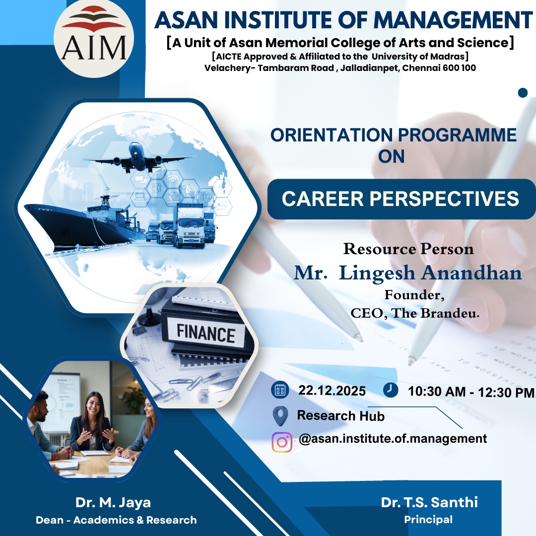 Orientation Programme on CAREER PERSPECTIVES at 10.30am – 12.30pm on 22.12.2025 in Research Hub.