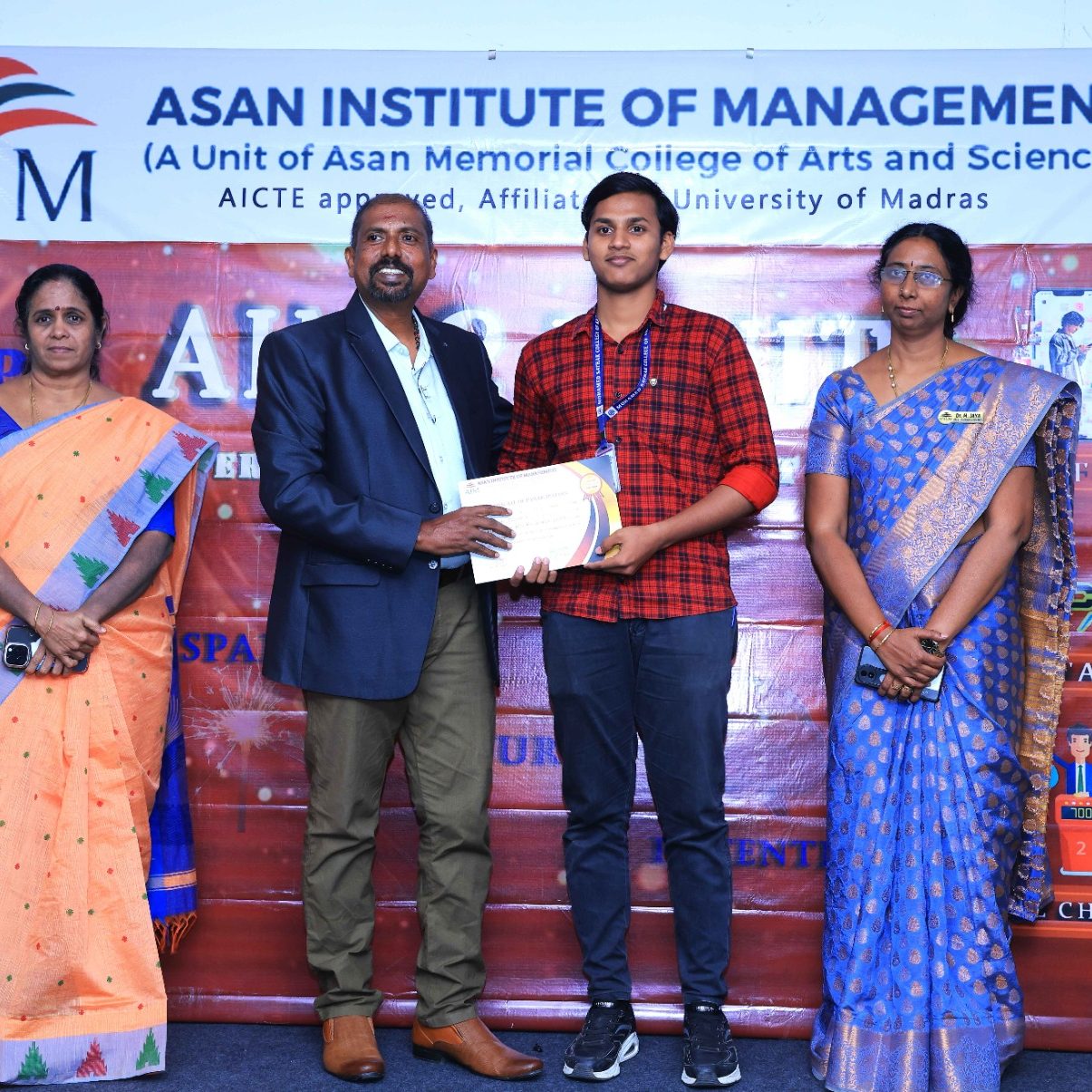 - Four final year MCA students attended the Personality Development programme hosted by the experts from Academic Career Excellence, Chennai from 9.9.2014 to 17.9.2014 organized by MBA Department, Asan Institute of Management, Chennai.