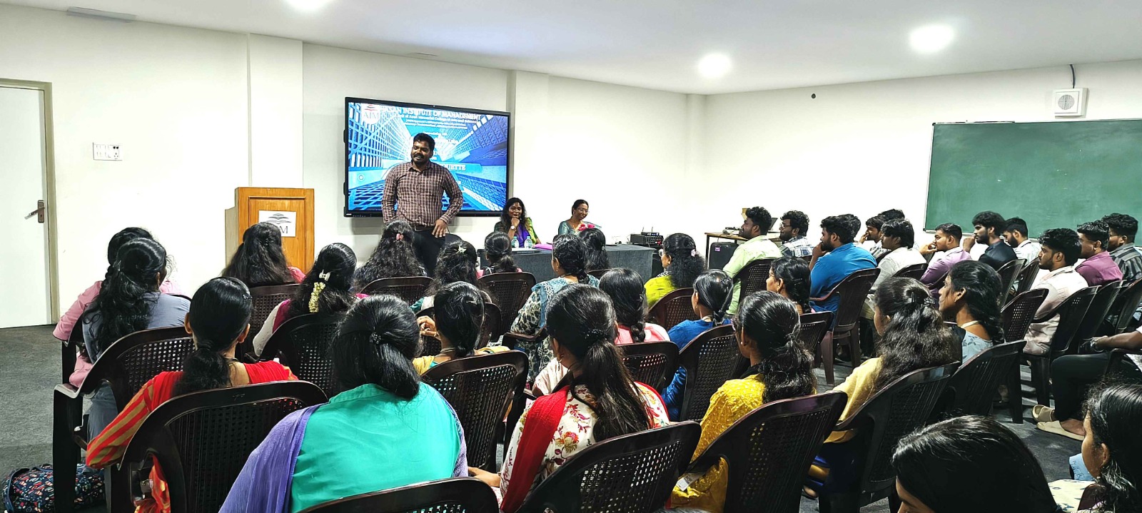 - To keep our students stay updated in the field of Technology a Seminar was organized in association with NEON Computer Education on the topic ‘Growing Role of Technology in Management and Dependencies of Internet’ on September 29, 2022. Mr. Gokila Krishnan S, Specialist Programmer, Infosys Limited, Chennai was the Resource person