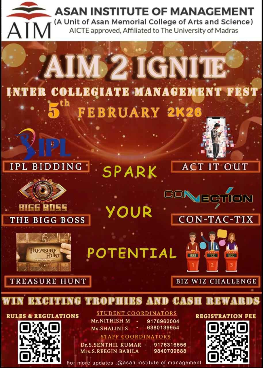 - Four final year MCA students attended the Personality Development programme hosted by the experts from Academic Career Excellence, Chennai from 9.9.2014 to 17.9.2014 organized by MBA Department, Asan Institute of Management, Chennai.